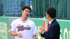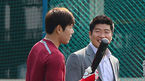 [OSEN=광주,박준형 기자] 15일 오후 광주 무등구장에서 열린 '2013 한국야쿠르트 세븐 프로야구' KIA 타이거즈와 SK 와이번스의 경기전, KIA 송은범이 김정준 해설위원과 이야기를 나누고 있다. 두사람은 2년전 SK에서 선수와 코디네