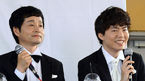 [OSEN=정송이 기자] 영화 제작자 겸 감독인 김조광수가 15일 오후 서울 동작구 아트나인 야외무대에서 동성연인과 결혼식 기자회견을 가졌다. 김조광수와 그의 동성 파트너 김승환이 질의응답 시간을 갖고 있다. 동성연인은 김