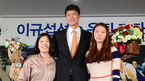 [OSEN=백승철 기자] 이규섭이 15일 오전 서울 논현동 KBL센터에서 은퇴 기자회견에서 팬들에게 꽃다발을 받고 미소르 짓고 있다. 서울 삼성 썬더스 농구단의 베테랑 포워드 이규섭이 은퇴를 결정했다. 은퇴 후에는 구단의 지원을
