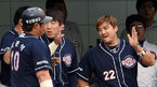 [OSEN=대전, 곽영래 기자] 18일 오후 대전구장에서 열린 '2013 한국야쿠르트 세븐 프로야구' 한화 이글스와 두산 베어스의 경기, 4회말 무사 1,2루 한화 김태완의 적시타로 득점을 올린 최진행이 동료들과 기뻐하고 있다. 한화와 두