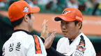 [OSEN=대전, 곽영래 기자] 18일 오후 대전구장에서 열린 '2013 한국야쿠르트 세븐 프로야구' 한화 이글스와 두산 베어스의 경기, 4회초 무사 1,2루 두산 허경민의 안타때 득점을 올린 최준석이 김진욱 감독과 하이파이브를 하고 있
