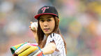 [OSEN=잠실, 지형준 기자] 18일 오후 서울 잠실야구장에서 열린 '2013 한국야쿠르트 세븐 프로야구' LG 트윈스와 KIA 타이거즈의 경기, 경기에 앞서 배우 김유미가 시구를 하고 있다. KIA는 서재응(36)을 선발로 내세웠다. 올 시즌 3승2