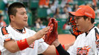 [OSEN=대전, 곽영래 기자] 18일 오후 대전구장에서 열린 '2013 한국야쿠르트 세븐 프로야구' 한화 이글스와 두산 베어스의 경기, 한화 김태균이 2회초 이닝을 마치고 더그아웃으로 들어오는 송창현을 격려하고 있다. 한화와 두산은