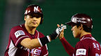 [OSEN=잠실, 민경훈 기자] 21일 오후 서울 잠실구장에서 열린 2013 한국야쿠르트 세븐프로야구 두산 베어스와 넥센 히어로즈의 경기, 5회초 1사 주자 만루 넥센 이택근이 1타점 적시타를 날린 후 1루에서 최만호 코치와 하이파이브