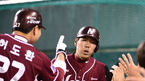 [OSEN=잠실, 김영민 기자] 22일 오후 잠실야구장에서 열린 '2013 한국야쿠르트 세븐 프로야구'두산 베어스와 넥센 히어로즈 경기,6회초 1사 2,3루 오윤의 적시타때 2루주자 강정호 득점을 올리며 동료들의 축하를 받고 있다 두산 베