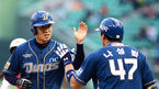 [OSEN=인천, 지형준 기자] 22일 오후 인천 문학구장에서 열린 2013 한국야쿠르트 세븐프로야구 SK 와이번스와 NC 다이노스의 경기, 1회초 무사 1루에서 NC 김경문 감독이 선제 투런포를 날린 조영훈을 더그아웃에서 맞이하고 있다. 이