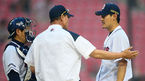 [OSEN=잠실, 민경훈 기자] 23일 오후 서울 잠실구장에서 열린 2013 한국야쿠르트 세븐프로야구 두산 베어스와 넥센 히어로즈의 경기 3회초 2사 주자 만루 넥센 이성열을 타석에서 두산 정명원 코치가 마운드에 올라 선발 노경은을