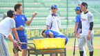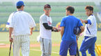[OSEN=대구, 최규한 기자]23일 오후 대구구장에서 열리는 '2013 한국야쿠르트 세븐 프로야구' 삼성 라이온즈 대 LG 트윈스와의 경기를 앞두고 LG 손주인이 삼성 선수들과 만나 대화를 나누고 있다. 삼성은 선발 윤성환을 내세운다.