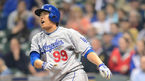 [OSEN=밀워키(위스콘신), 백승철 기자] 23일 새벽(이하 한국시간) 미국 위스콘신주 밀워키 밀러파크에서 열리는 LA 다저스와 밀워키 브루어스의 경기, 7회초 2사 주자 1루 LA 다저스 류현진이 좌익수플라이 타구를 날리고 있다. 지