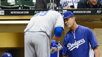 [OSEN=밀워키(위스콘신), 백승철 기자] 23일 새벽(이하 한국시간) 미국 위스콘신주 밀워키 밀러파크에서 열리는 LA 다저스와 밀워키 브루어스의 경기,2회초 LA 다저스 류현진이 타석으로 나갈때 마크 맥과이어 타격코치가 류현진