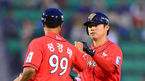 [OSEN=대전, 최규한 기자]24일 오후 대전구장에서 '2013 한국야쿠르트 세븐 프로야구' 한화 이글스 대 삼성 라이온즈의 경기가 열렸다. 4회초 삼성 공격 2사 2, 3루 상황 7번 조동찬의 2타점 적시타때 득점에 성공한 우동균과 이승엽