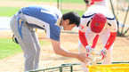 [OSEN=광주, 이대선 기자] 24일 오후 광주 무등야구장에서 열린 '2013 한국야쿠르트 세븐 프로야구' KIA 타이거즈와 NC 다이노스의 경기, 경기에 앞서 NC 이현곤이 배팅볼 정리를 하는 KIA 김종국 코치를 돕고 있다. KIA와 NC의 만남은 상