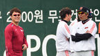 [OSEN=목동, 민경훈 기자] 26일 오후 서울 목동구장에서 2013 한국야쿠르트 세븐프로야구 넥센 히어로즈와 롯데 자이언츠의 경기가 열릴 예정인 가운데 양팀 훈련 시간에 넥센 염경엽 감독이 롯데 코치진과 즐겁게 얘기를 나누고