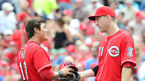 [OSEN=신시내티(오하이오), 백승철 기자] 27일 새벽(이하 한국시간) 미국 오하이오주 신시내티 그레이트 아메리칸 볼파크에서 열린 신시내티 레즈와 시카고 컵스의 경기 6회말 2사 추신수가 볼넷으로 출루한 후 리조와 이야기를