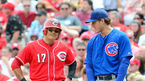 [OSEN=신시내티(오하이오), 백승철 기자] 27일 새벽(이하 한국시간) 미국 오하이오주 신시내티 그레이트 아메리칸 볼파크에서 열린 신시내티 레즈와 시카고 컵스의 경기 6회말 2사 추신수가 볼넷으로 출루한 후 리조와 이야기를