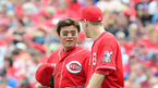 [OSEN=신시내티(오하이오), 백승철 기자] 27일 새벽(이하 한국시간) 미국 오하이오주 신시내티 그레이트 아메리칸 볼파크에서 열린 신시내티 레즈와 시카고 컵스의 경기 6회말 종료 후 공수교대 때 추신수가 프레이저와 이야기를