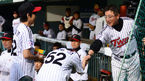 [OSEN=부산, 민경훈 기자] 29일 오후 부산 사직구장에서 열린 2013 한국야쿠르트 세븐프로야구 롯데 자이언츠와 두산 베어스의 경기, 4회초를 막아낸 롯데 선발 이재곤이 강민호와 하이파이브를 하고 있다. 이 날 경기에서 롯데와
