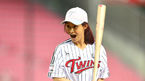 [OSEN=잠실, 최규한 기자] 29일 오후 서울 잠실야구장에서 '2013 한국야쿠르트 세븐 프로야구' LG 트윈스와 한화 이글스의 경기가 열렸다. 시타자로 나선 강혜정이 시구자로 나선 남편 타블로의 공을 향해 스윙을 하고 있다. 한화는