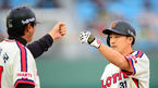 [OSEN=잠실, 최규한 기자] 29일 오후 서울 잠실야구장에서 '2013 한국야쿠르트 세븐 프로야구' LG 트윈스와 한화 이글스의 경기가 열렸다. 시타자로 나선 강혜정이 포수 쪽을 바라보며 깜짝 놀라는 표정을 짓고 있다. 한화는 LG와 시