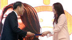[OSEN=곽영래 기자] 29일 오후 이화여자대학교 앞 대현공원에서 진행된 특허청 '위조상품 구매근절 캠페인' 홍보대사 위촉식에서 특허청 김영민 청장이 박신혜에게 홍보대사 위촉서를 건네고 있다. 특허청은 박신혜를 홍보대사