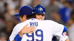 [OSEN=로스앤젤레스(캘리포니아), 백승철 기자] 29일 오전(이하 한국시간) 미국 캘리포니아주 로스앤젤레스 다저스타디움에서 열린 LA 다저스와 LA 에인절스의 경기 종료 후 류현진이 동료들과 승리의 기쁨을 나누고 있다. LA 다저