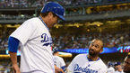 [OSEN=로스앤젤레스(캘리포니아), 백승철 기자] 29일 오전(이하 한국시간) 미국 캘리포니아주 로스앤젤레스 다저스타디움에서 열린 LA 다저스와 LA 에인절스의 경기,3회말 2루타를 날린 다저스 류현진이 이닝종료 후 맷켐프의 격