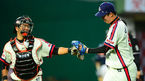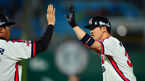 [OSEN=부산, 민경훈 기자] 29일 오후 부산 사직구장에서 열린 2013 한국야쿠르트 세븐프로야구 롯데 자이언츠와 두산 베어스의 경기, 8회초를 막아낸 롯데 이명우가 동료들과 기쁨을 나누고 있다. 이 날 경기에서 롯데와 두산은 이