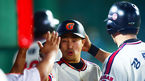 [OSEN=부산, 민경훈 기자] 29일 오후 부산 사직구장에서 열린 2013 한국야쿠르트 세븐프로야구 롯데 자이언츠와 두산 베어스의 경기, 8회말 무사 주자 2,3루 롯데 박종윤이 좌중간 2타점 적시타를 날린 후 1루에서 김응국 코치와 하