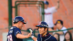 [OSEN=문학,박준형 기자] 30일 오후 인천 문학구장에서 열린 '2013 한국야쿠르트 세븐프로야구' SK 와이번스와 삼성 라이온즈의 경기 1회말 2사 SK 최정이 솔로 홈런을 날리고 이만수 감독의 축하를 받고 있다. 이날 SK와 삼성은 레이