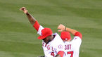 [OSEN=애너하임(캘리포니아), 백승철 기자] 30일 오전(이하 한국시간) 미국 캘리포니아주 애너하임 에인절스타디움에서 열린 LA 에인절스와 LA 다저스의 경기 종료 후켄드릭과 트라웃이 승리의 기쁨을 나누고 있다. LA 다저스가 뒤