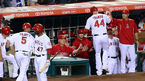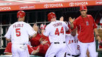 [OSEN=애너하임(캘리포니아), 백승철 기자] 30일 오전(이하 한국시간) 미국 캘리포니아주 애너하임 에인절스타디움에서 열린 LA 에인절스와 LA 다저스의 경기 5회말 2사 1루 트럼보가 투런포를 친 후 덕아웃에서 환영을 받고 있다.