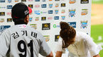 [OSEN=광주, 민경훈 기자] 31일 오후 광주 무등구장에서 열린 2013 한국야쿠르트 세븐프로야구 KIA 타이거즈와 LG 트윈스의 경기, 9회말 1사 주자 없는 상황에거 박기남이 솔로홈런을 날린 후 덕아웃에서 김주찬과 하이파이브를 하