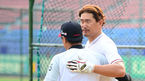 [OSEN=대전, 최규한 기자] 31일 오후 대전구장에서 열리는 '2013 한국야쿠르트 세븐 프로야구' 한화 이글스와 NC 다이노스의 경기를 앞두고 가진 훈련에서 한화 김성한 수석코치가 김태완의 엉덩이를 때리는 장난을 치고 있다. 한화