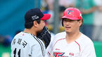 [OSEN=광주, 민경훈 기자] 1일 오후 광주 무등구장에서 열린 2013 한국야쿠르트 세븐프로야구 KIA 타이거즈와 LG 트윈스의 경기, 6회말을 마치고 LG 류제국이 최희섭에게 찾아가 6회말 2사 주자 2루 LG 류제국이 KIA 최희섭에게 실수로