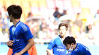 [OSEN=수원, 최규한 기자] 1일 오후 수원월드컵경기장에서 열리는 '2013 현대오일뱅크 K리그 클래식' 수원 삼성과 경남FC의 경기를 앞두고 FC MEN과 동산정보산업고의 오픈경기가 열렸다. FC MEN 김현중과 이완이 전반전을 마치고 경