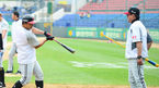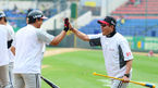[OSEN=광주, 민경훈 기자] 1일 오후 광주 무등구장에서 2013 한국야쿠르트 세븐프로야구 KIA 타이거즈와 LG 트윈스의 경기가 열릴 예정인 가운데 양팀 훈련 시간에 LG 이진영이 어제 경기에서 만루 홈런을 날린 박용택과 즐겁게 얘