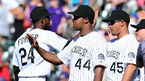 [OSEN=덴버(콜로라도), 백승철 기자] 3일 새벽(이하 한국시간) 미국 콜로라도주 덴버 쿠어스 필드에서 열린 콜로라도 로키스와 LA 다저스의 경기 종료 후 로키스 선수들이 하이파이브를 하고 있다. LA 다저스가 류현진 공백을 실감