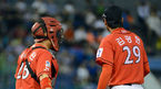 [OSEN=창원, 김영민 기자] 5일 오후 창원 마산구장에서 열린 '2013 한국야쿠르트 세븐 프로야구' NC 다이노스와 SK 와이번스 경기,5회말 선두타자 김종호에게 3루타를 허용하자 SK 박경완 포수가 선발 김광현을 안정시키려 마운드에