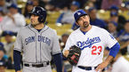 [OSEN=로스앤젤레스(캘리포니아), 백승철 기자] 5일 오전(이하 한국시간) 미국 캘리포니아주 로스앤젤레스 다저스타디움에서 열린 LA 다저스와 샌디에이고 파드리스의 경기 5회초 1사 1,3루 조코의 타석, 쿠엔틴과 곤살레스가 1루