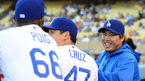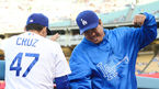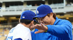 [OSEN=로스앤젤레스(캘리포니아), 백승철 기자] 5일 오전(이하 한국시간) 미국 캘리포니아주 로스앤젤레스 다저스타디움에서 열리는 LA 다저스와 샌디에이고 파드리스의 경기 시작 전 류현진이 크루스와 세리모니 연습을 하고