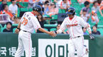 [OSEN=인천, 최규한 기자] 7일 오후 인천 문학구장에서 '2013 한국야쿠르트 세븐 프로야구' SK 와이번스 대 한화 이글스의 경기가 열렸다. 2회말 SK 공격 선두타자로 나선 9번 박경완이 좌월 솔로포를 터트리고 한혁수 코치와 인사를
