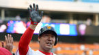 [OSEN=인천, 최규한 기자] 7일 오후 인천 문학구장에서 '2013 한국야쿠르트 세븐 프로야구' SK 와이번스 대 한화 이글스의 경기가 열렸다. 2회말 SK 공격 선두타자로 나선 9번 박경완이 좌월 솔로포를 터트리고 선물받은 인형을 관중