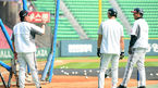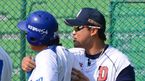 [OSEN=대구, 김영민 기자] 7일 오후 대구구장에서 열린 '2013 한국야쿠르트 세븐 프로야구' 삼성 라이온즈 와 두산 베어스 경기에 앞선 양팀 훈련에서 두산 홍성흔이 어제 벌어진 넥센 -삼성의 벤치클리어닝에서 삼성 진갑용에게