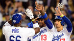 [OSEN=로스앤젤레스(캘리포니아), 백승철 기자] 7일 오전(이하 한국시간) 미국 캘리포니아주 로스앤젤레스 다저스타디움에서 열린 LA 다저스와 애틀랜타 브레이브스의 경기 8회말 1사 만루 푸이그가 만루홈런을 친 후 득점 주자들