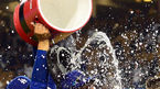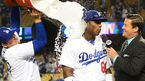 [OSEN=로스앤젤레스(캘리포니아), 백승철 기자] 7일 오전(이하 한국시간) 미국 캘리포니아주 로스앤젤레스 다저스타디움에서 열린 LA 다저스와 애틀랜타 브레이브스의 경기 종료 후 푸이그가 인터뷰 중 크루스에게 물세례를 당