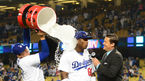 [OSEN=로스앤젤레스(캘리포니아), 백승철 기자] 7일 오전(이하 한국시간) 미국 캘리포니아주 로스앤젤레스 다저스타디움에서 열린 LA 다저스와 애틀랜타 브레이브스의 경기 종료 후 푸이그가 인터뷰 도중 크루스에게 물세례를