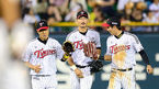 [OSEN=잠실, 이대선 기자] 7일 오후 잠실야구장에서 열린 '2013 한국야쿠르트 세븐 프로야구' LG 트윈스와 롯데 자이언츠의 경기, 8회초 무사 만루에서 LG 박용택이 롯데 강민호의 타구를 외야플라이로 처리하고 동료들과 덕아웃으