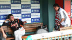 [OSEN=잠실, 최규한 기자] 8일 오후 서울 잠실야구장에서 열리는 '2013 한국야쿠르트 세븐 프로야구' LG 트윈스 대 롯데 자이언츠의 경기를 앞두고 롯데 김시진 감독과 LG 김기태 감독이 대화를 나누고 있다. LG는 '파이어볼러' 리즈