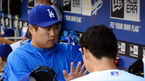 [OSEN=로스앤젤레스(캘리포니아), 백승철 기자] 9일 오전(이하 한국시간) 미국 캘리포니아주 로스앤젤레스 다저스타디움에서 열린 LA 다저스와 애틀랜타 브레이브스의 경기 시작 전 류현진이 크루스와 '장풍' 세레모니를 하고 있