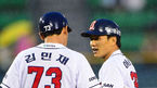 [OSEN=잠실, 민경훈 기자] 11일 오후 서울 잠실구장에서 열린 2013 한국야쿠르트 세븐프로야구 두산 베어스와 SK 와이번스의 경기, 1회말 1사 주자 1루 두산 김현수가 우익수 왼쪽 1루타를 날린 후 1루에서 김민재 코치와 하이파이브